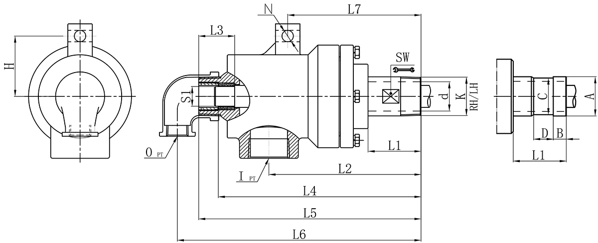 | Model | K | I | O | S1 | d | L1 | L2 | L3 | L4 | L5 | L6 | L7 | L9 | N | H | SW | 法蘭式外管尺寸對照表 | |||