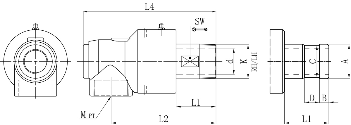 | Model | K | I | d | L1 | L2 | L4 | SW | 法蘭式外管尺寸對(duì)照表 | |||