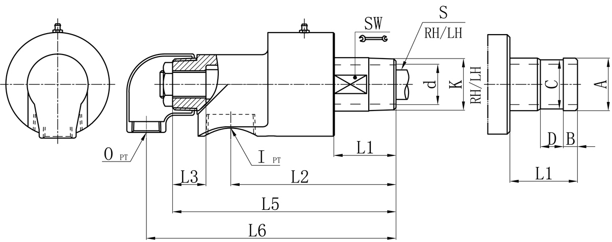 | Model | K | I | O | S | d | L1 | L2 | L3 | L5 | L6 | SW | 法蘭式外管尺寸對(duì)照表 | |||