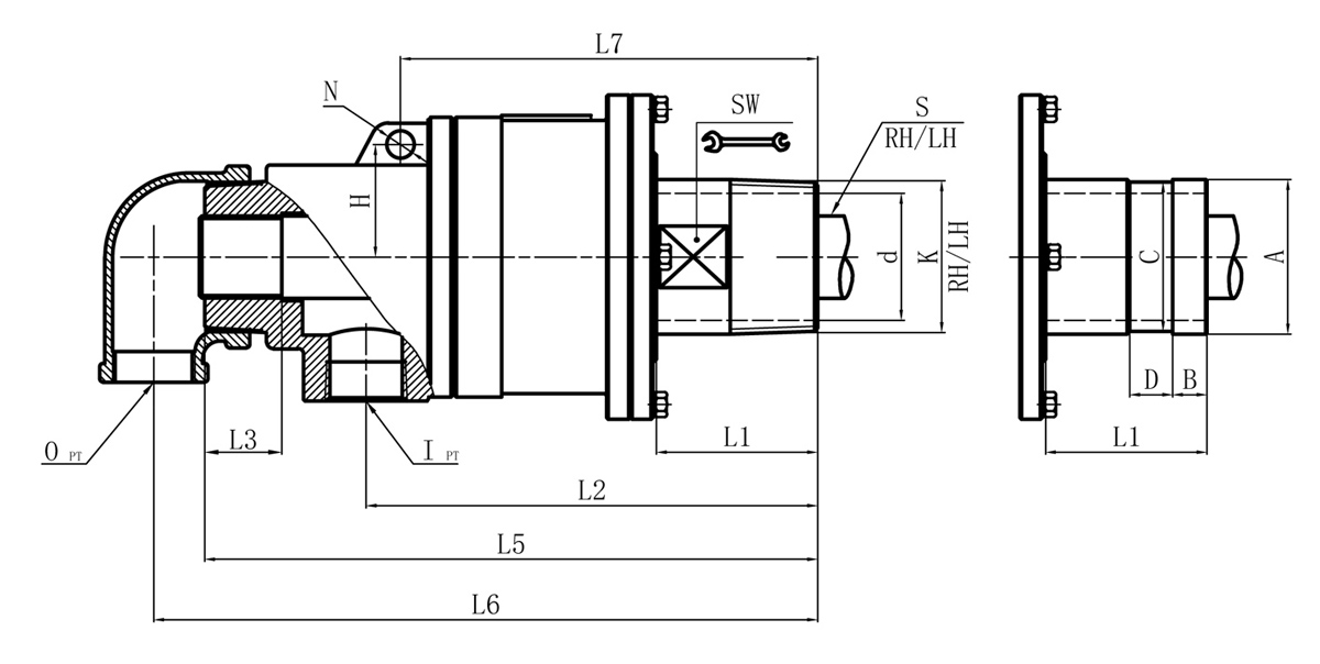 Model K M I O S S1 D1 L1 L2 L3 L5 L6 L7 L8 N SW H 法蘭式外管尺寸對(duì)照表